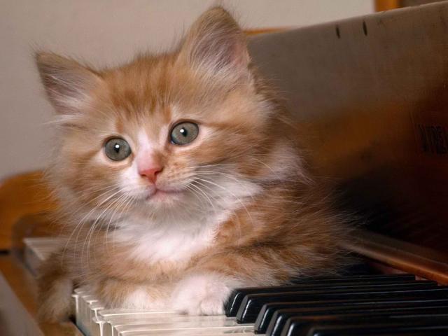 Wallpaper Cat on the keys of the piano