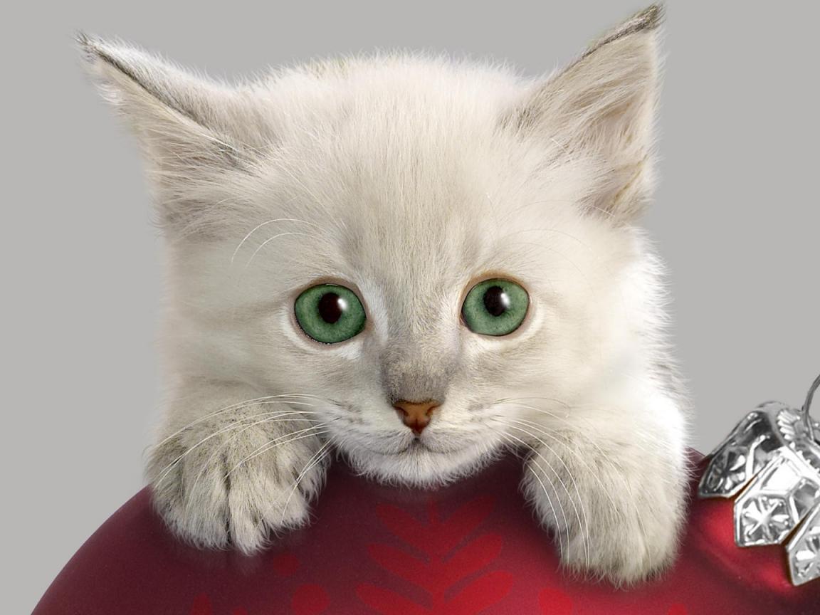 Wallpaper Kitten with a Christmas toy