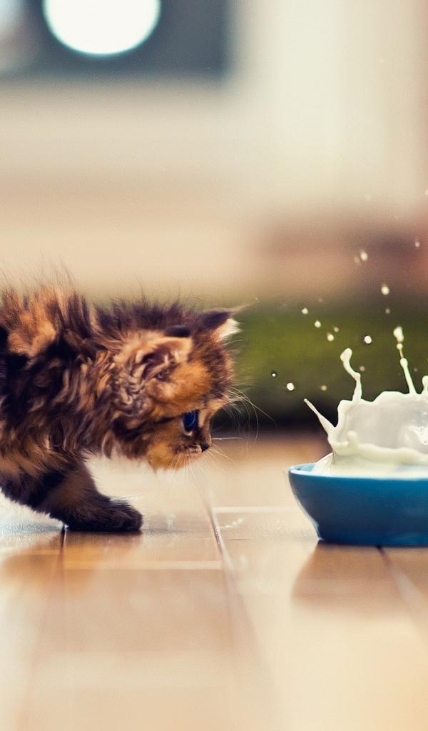 Wallpaper Kitten and splashes of milk