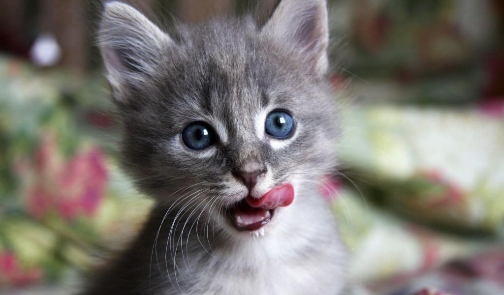 Wallpaper Kitty licks lips