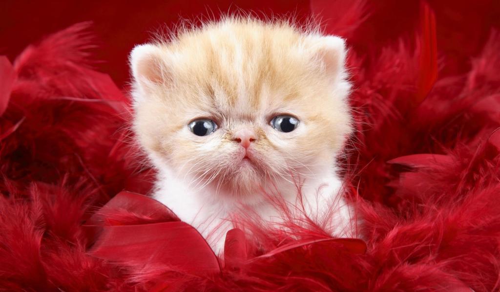 Wallpaper Kitten on a red background