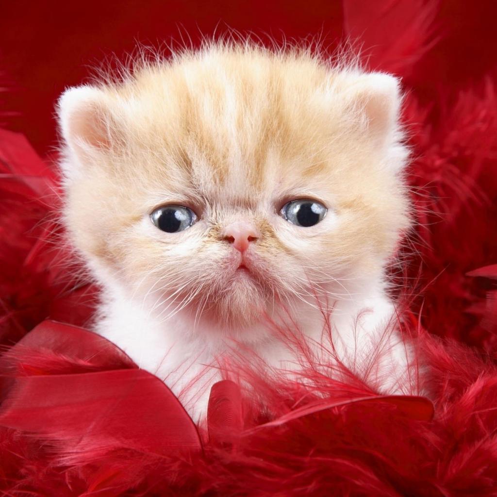 Wallpaper Kitten on a red background