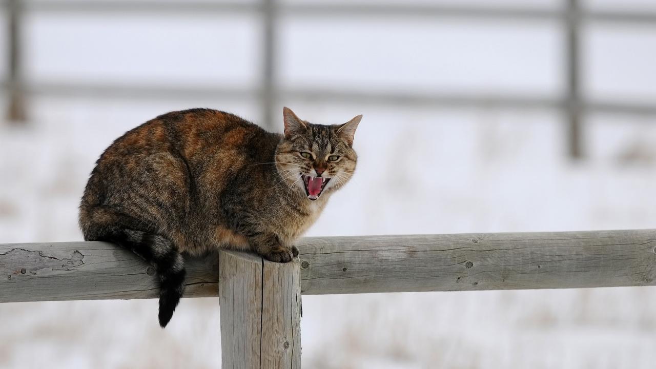 Wallpaper A cat sits on the fence