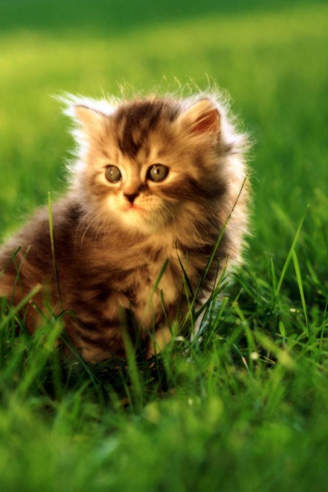 Wallpaper The little gray kitten in the grass