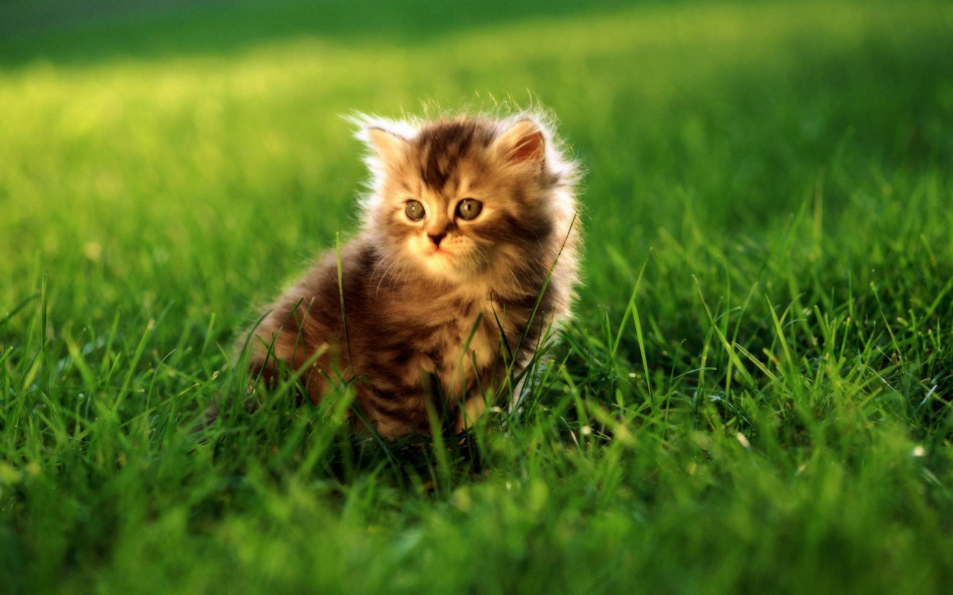 Wallpaper The little gray kitten in the grass