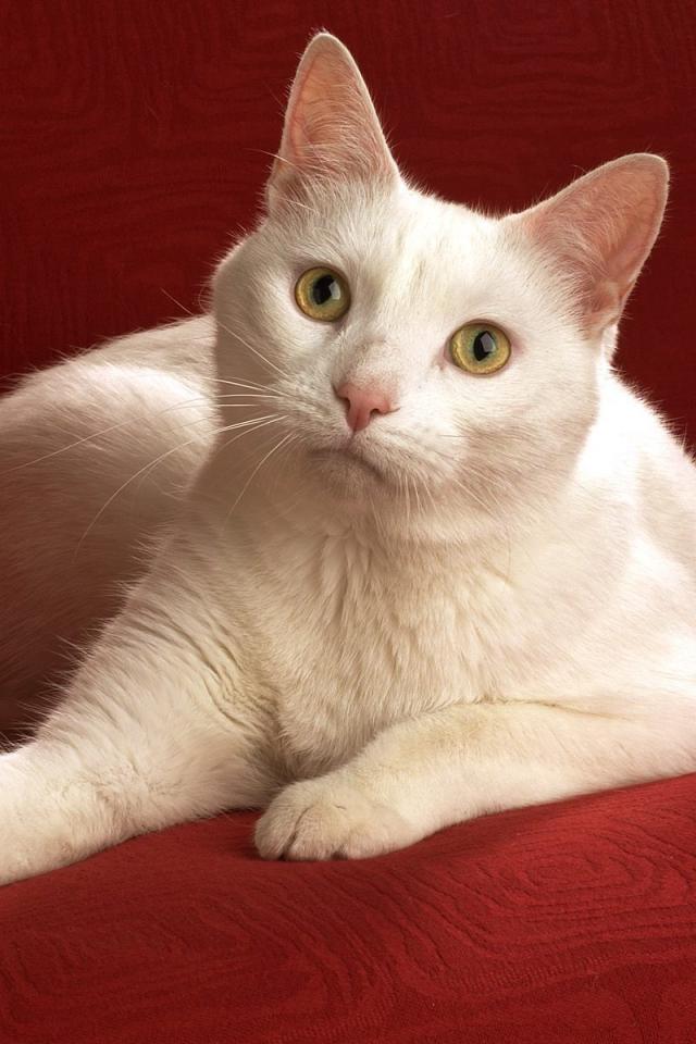 Wallpaper White cat on a red sofa