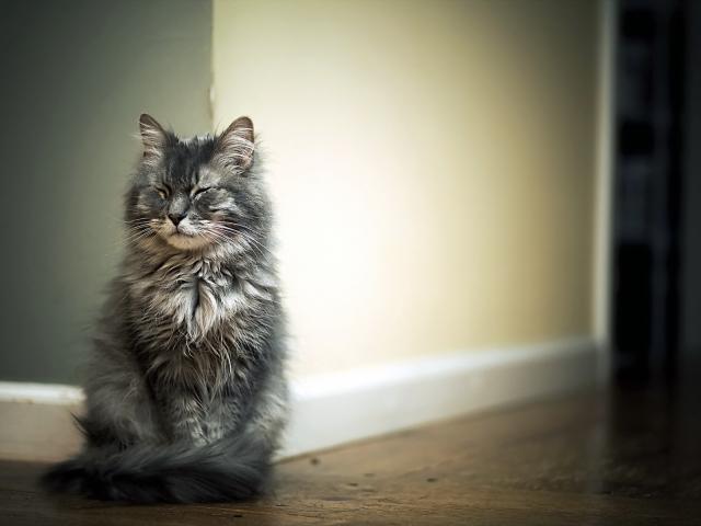 Wallpaper The cat sleeps sitting near the wall