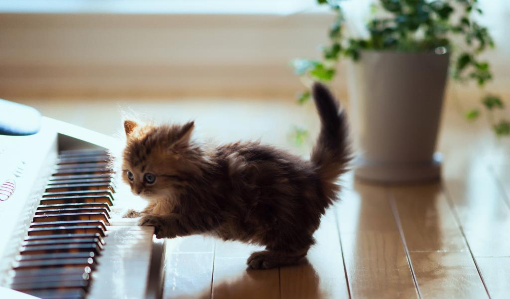 Wallpaper The cat playing the piano