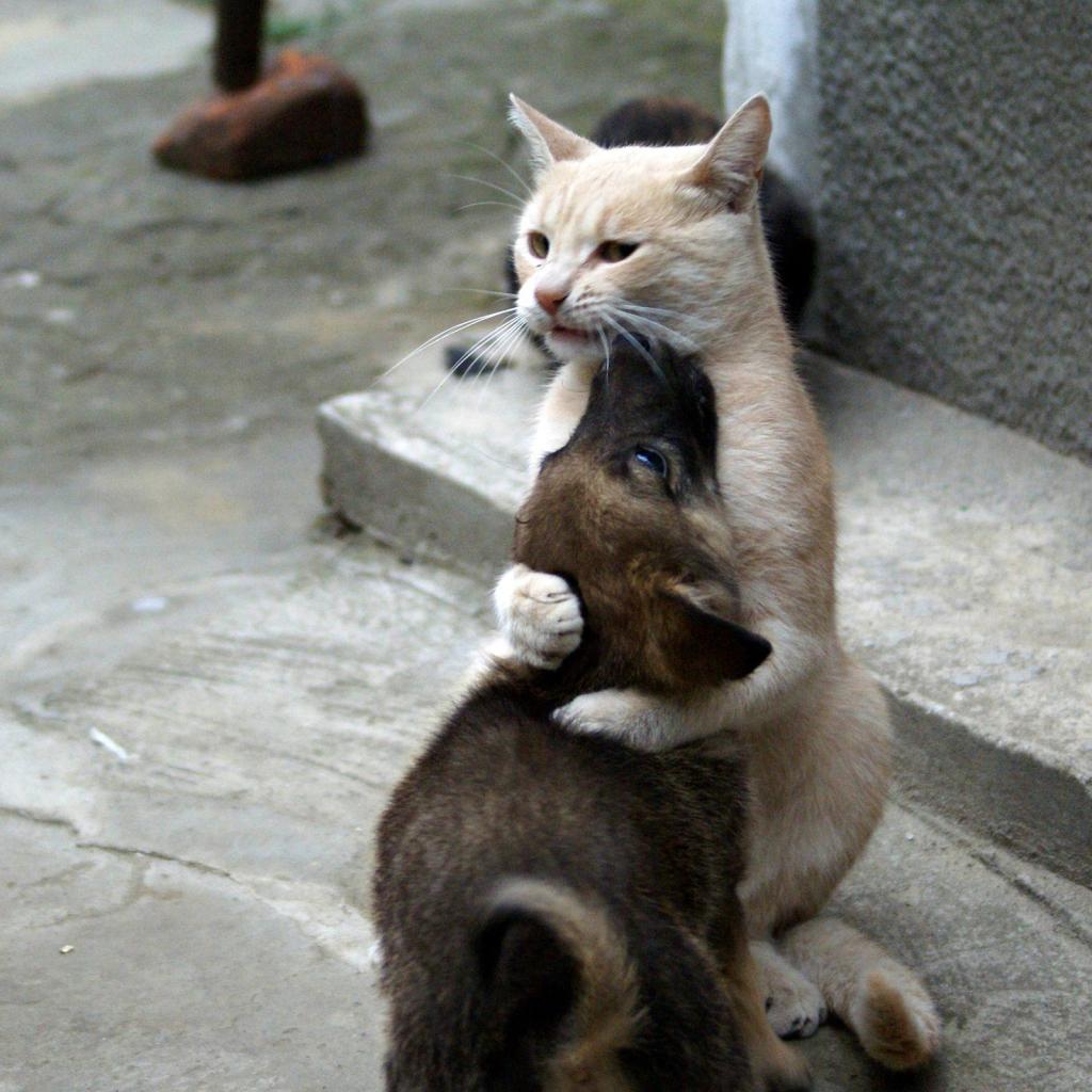 Wallpaper Cat dog hugs