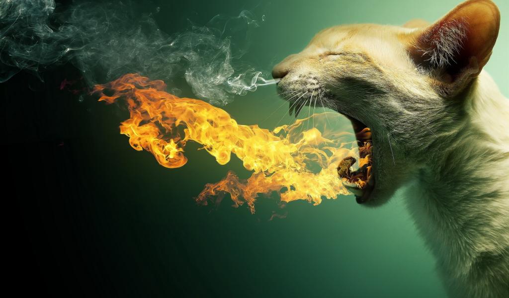 Wallpaper The cat played fire