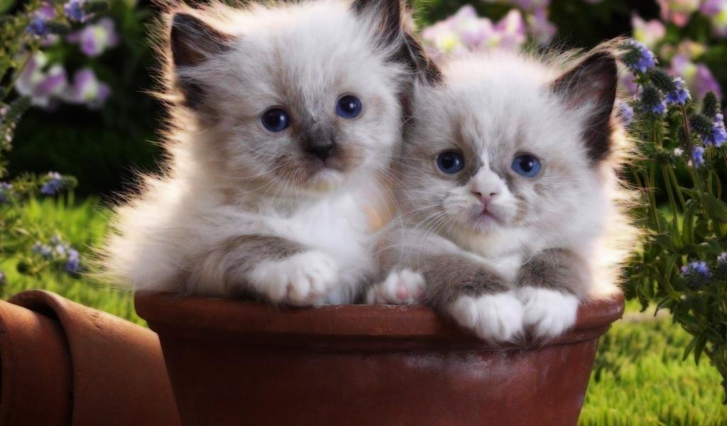» Wallpaper Two kittens in a flower-pot