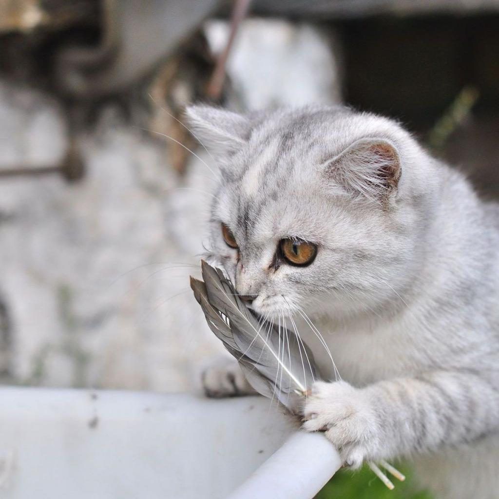 Wallpaper Silver Cat and feather