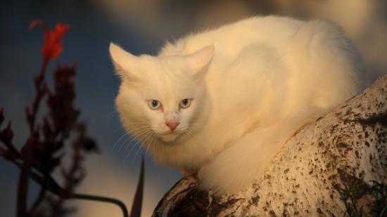 Wallpaper Serious white cat on a tree