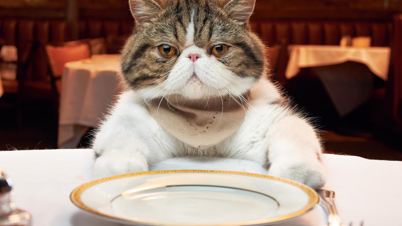 Wallpaper Cat with a plate at the table