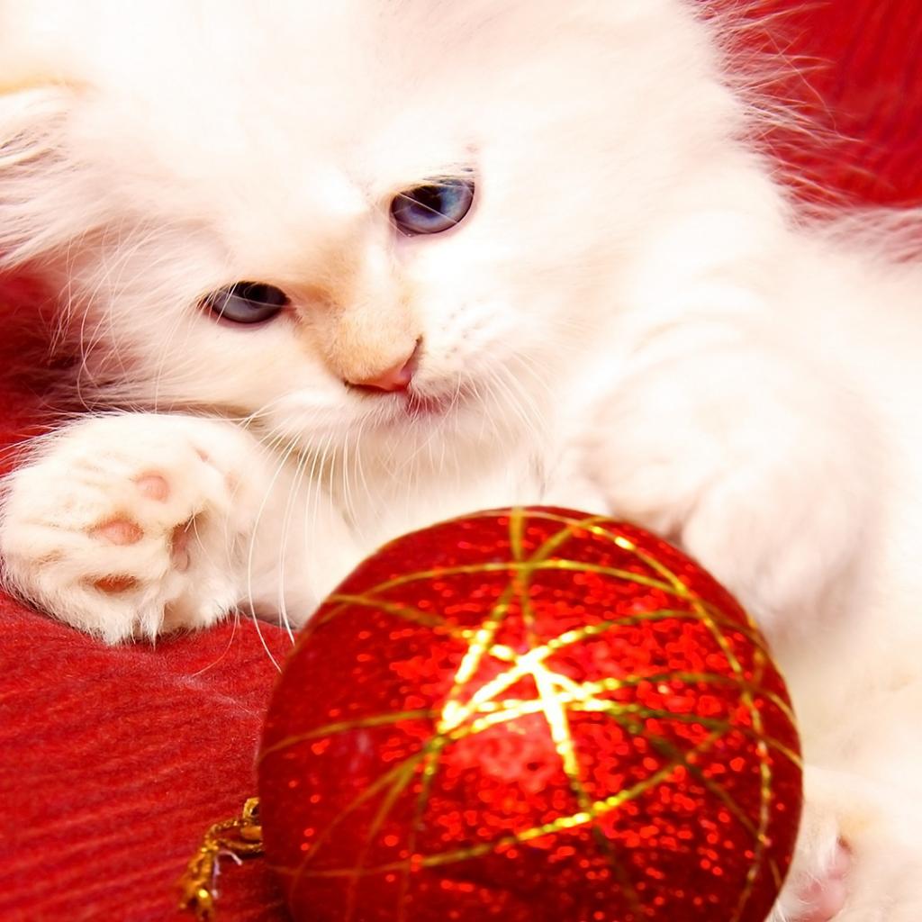 Wallpaper White cat Christmas tree toy