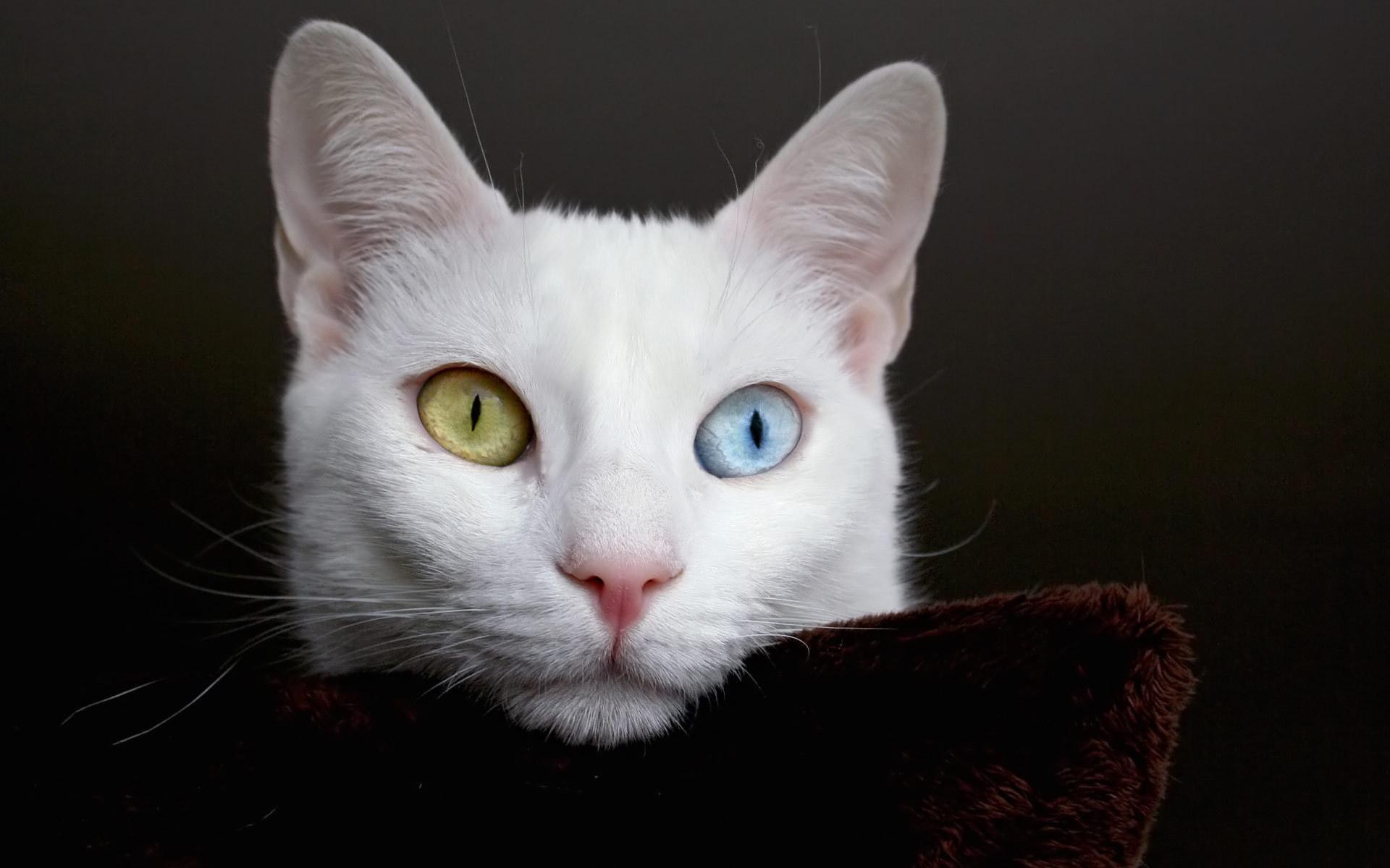 Wallpaper Beautiful white cat with different eyes thinking about eternity