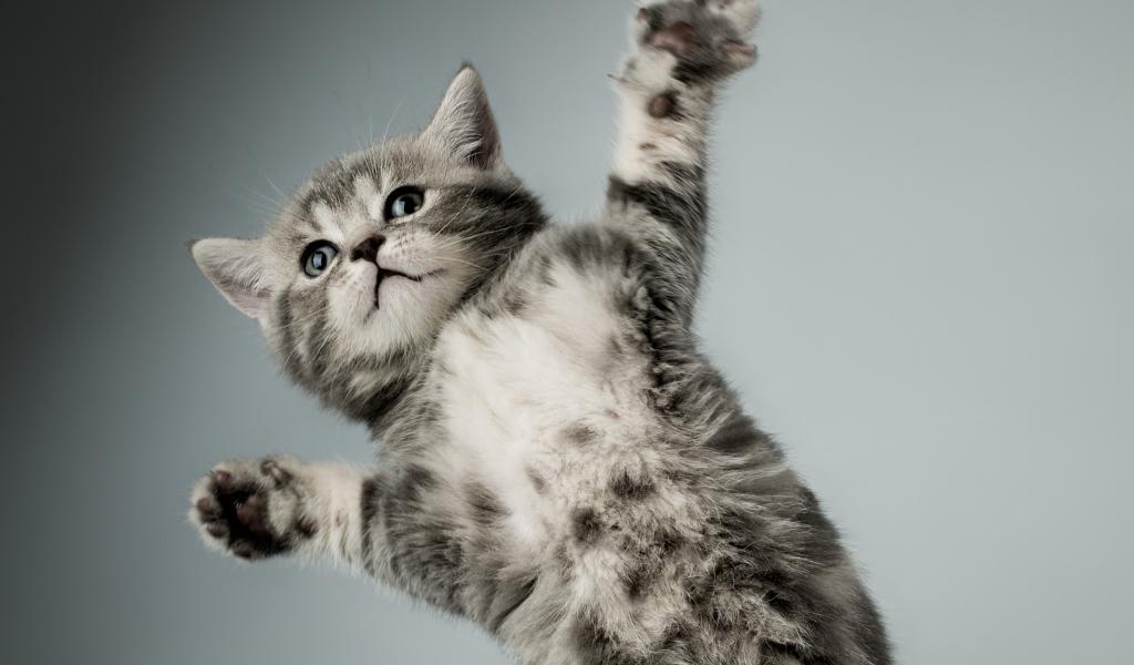 Wallpaper Gray cat in flight