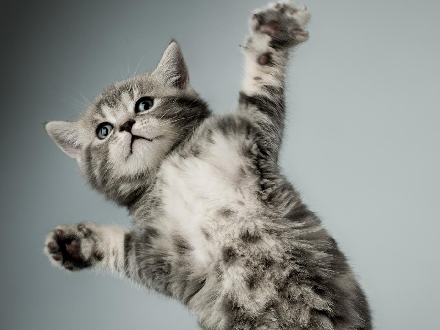 Wallpaper Gray cat in flight