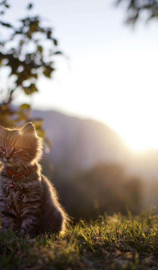 Wallpaper Kitten at sunset