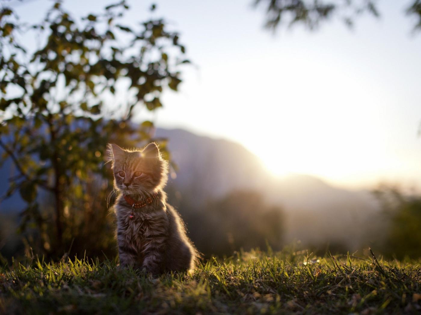 Wallpaper Kitten at sunset