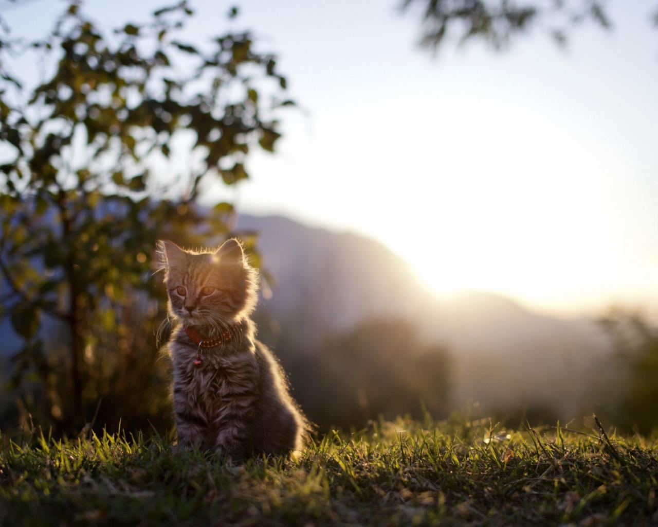 Wallpaper Kitten at sunset