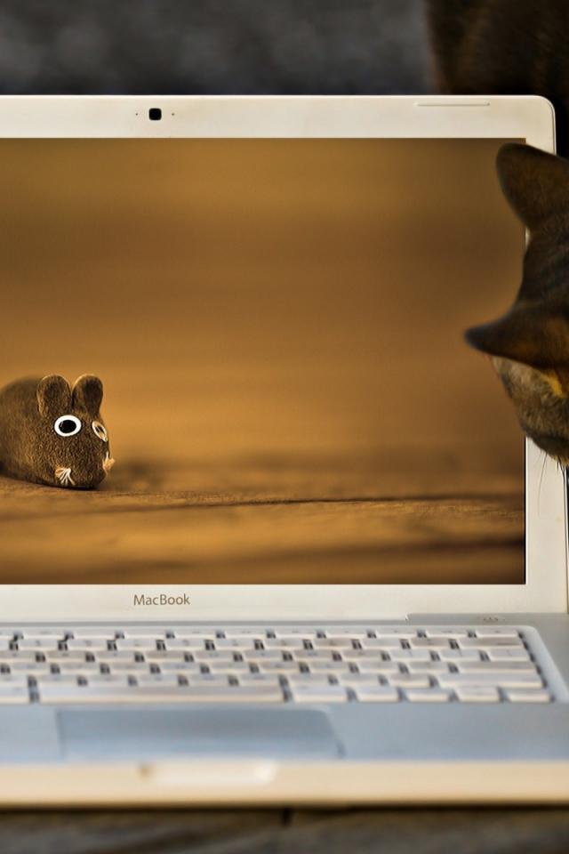 Wallpaper Cat and mouse on the laptop screen