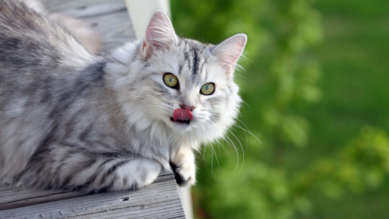 » Wallpaper Gray fluffy cat licked