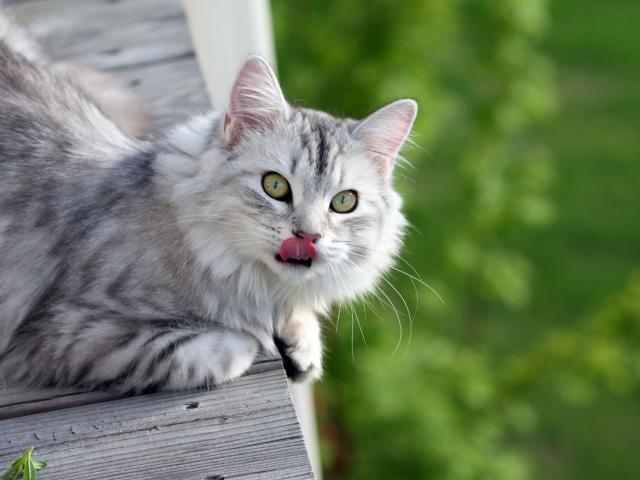 Wallpaper Gray fluffy cat licked