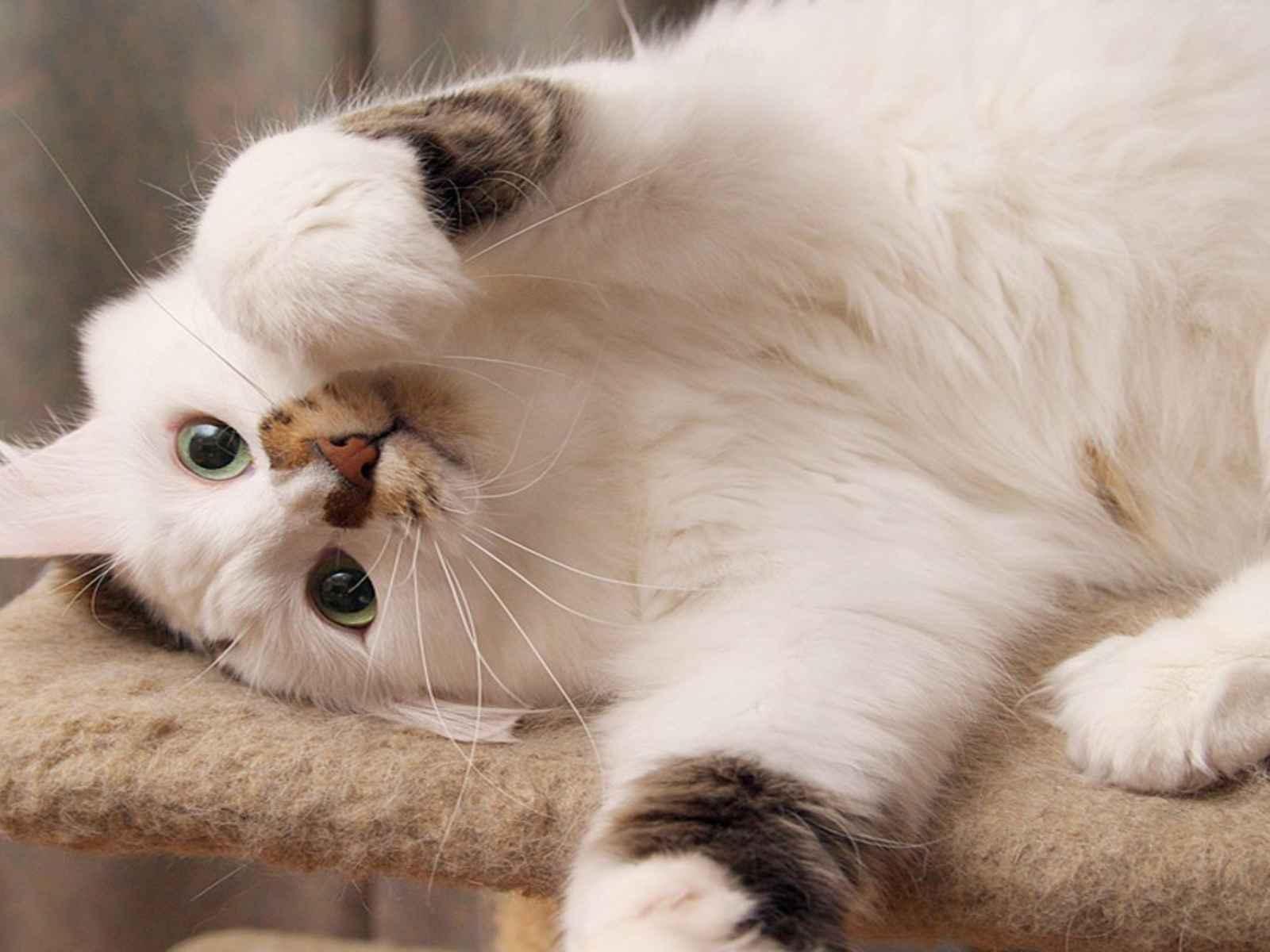 Wallpaper White fluffy cat sprawled