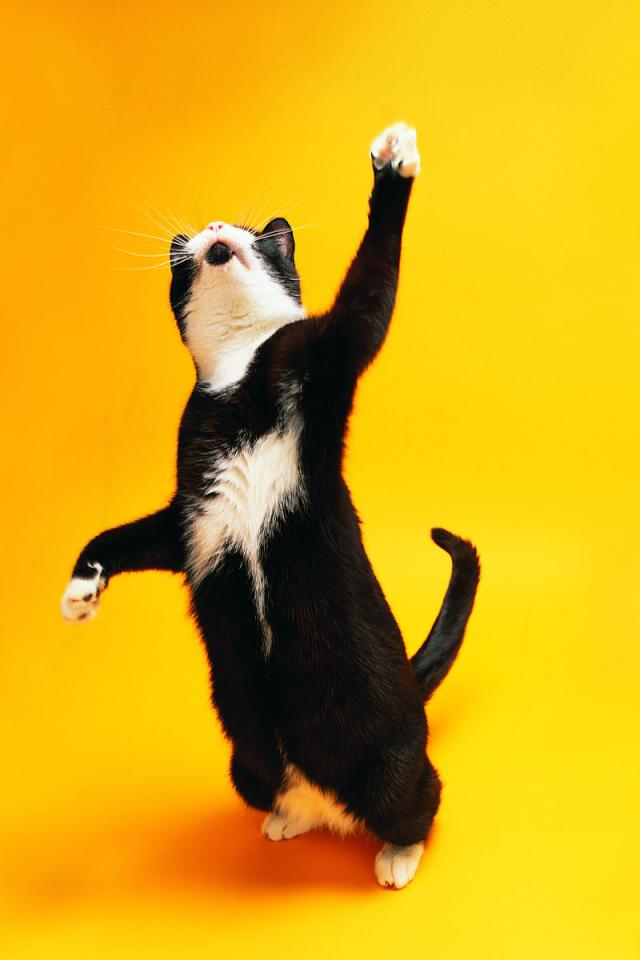 Wallpaper Black-and-white cat dancing
