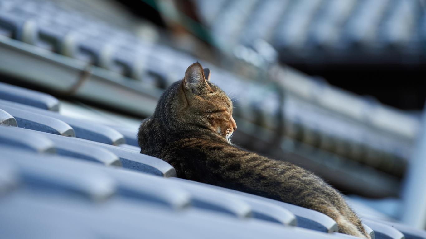 Wallpaper Cat sleeps on the roof