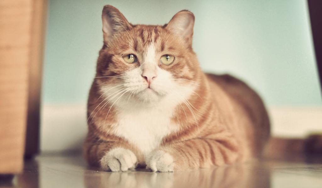 Wallpaper Red sad fat cat on the floor