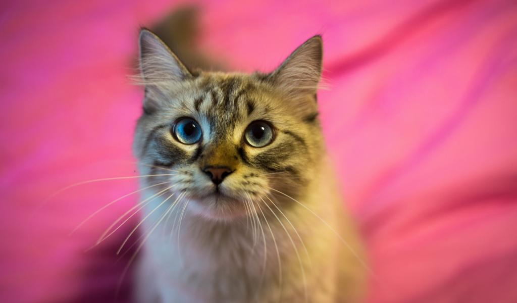 Wallpaper Beautiful fluffy cat on a pink background