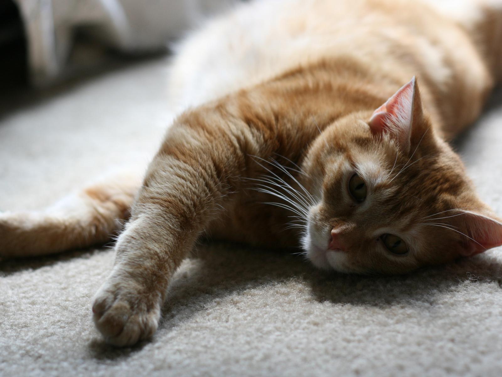 Wallpaper Red cute cat on the floor