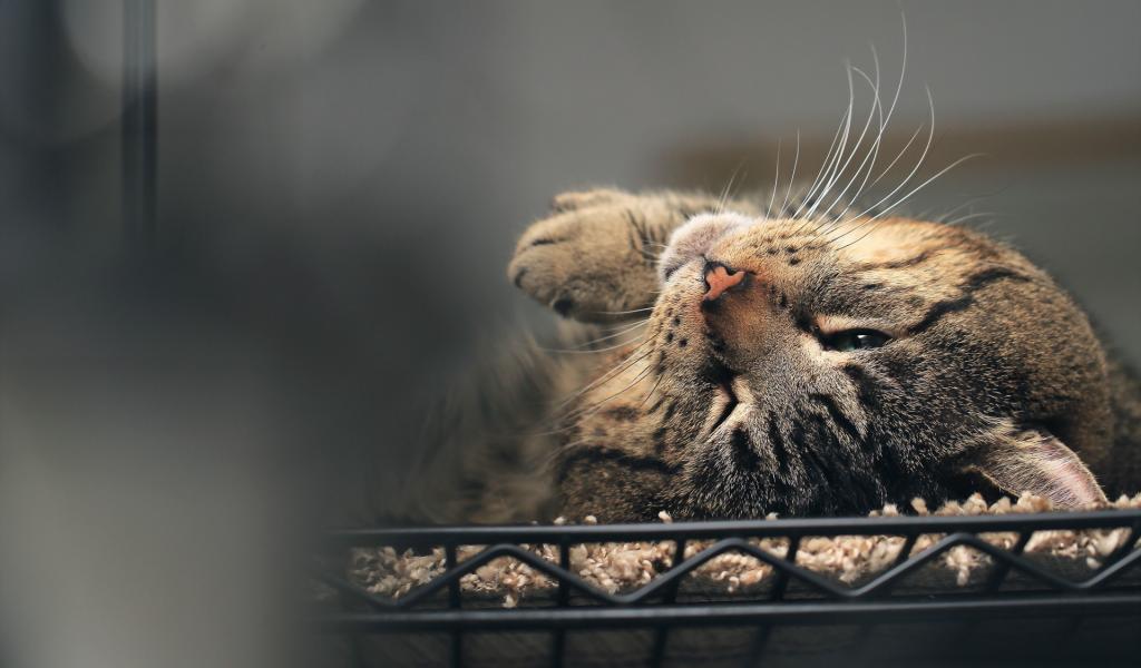 Wallpaper Tabby cat luxuriating in bed