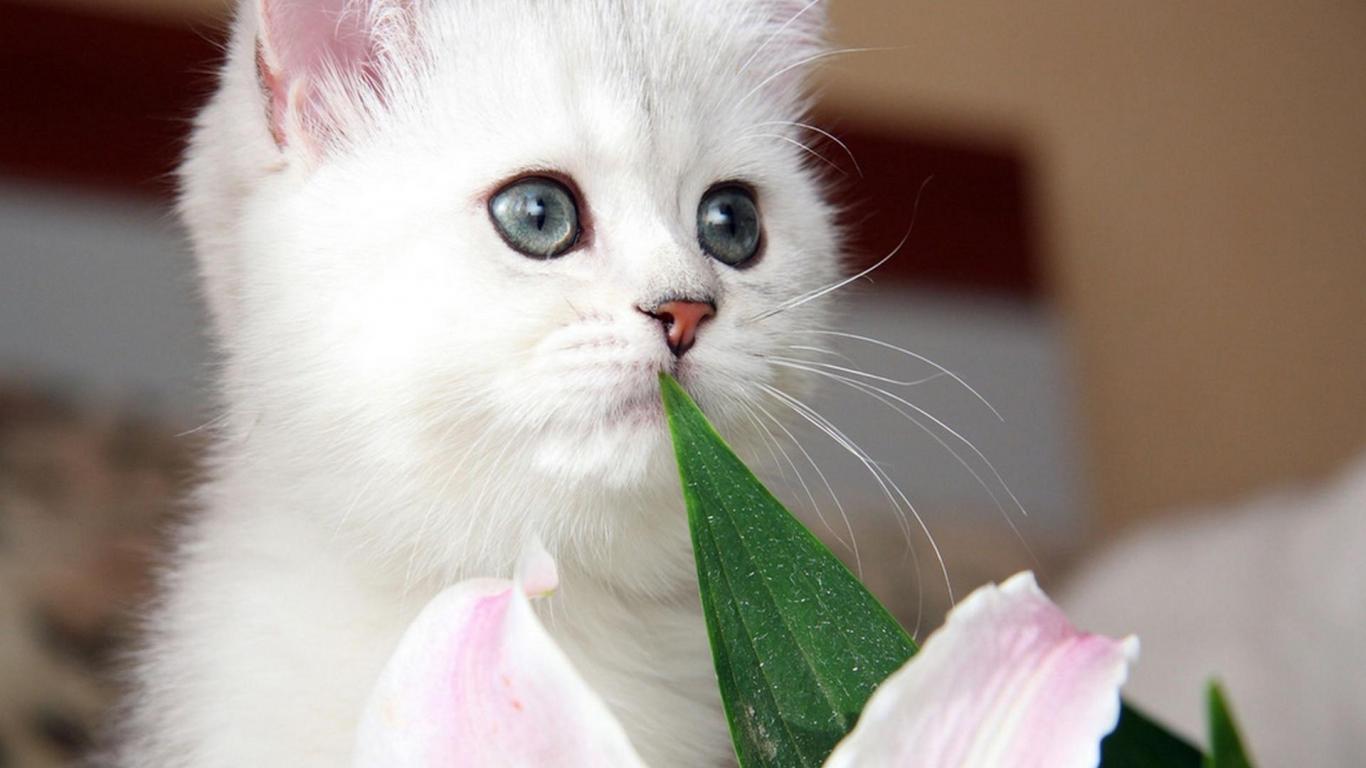Wallpaper Beautiful kitten with gray eyes and a flower