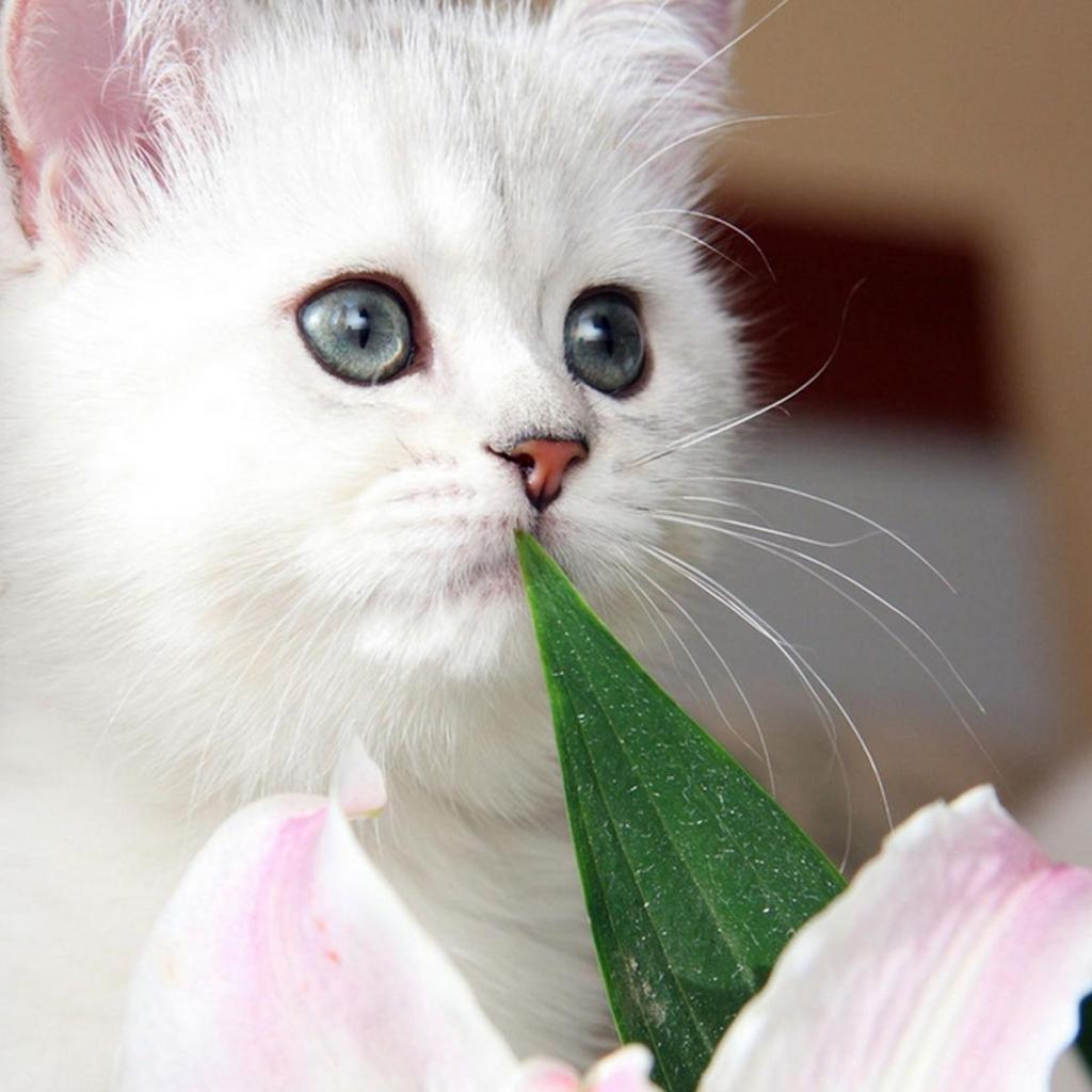 Wallpaper Beautiful kitten with gray eyes and a flower