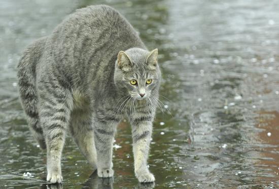 » Wallpaper Playful gray cat in the rain