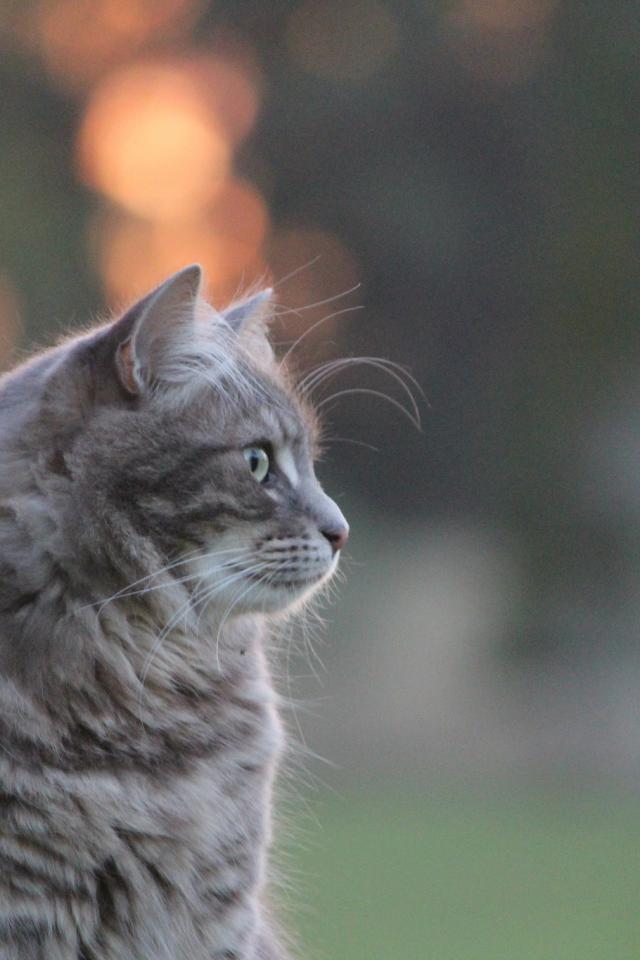 » Wallpaper Gray fluffy cat in nature