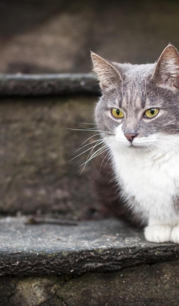 Wallpaper Beautiful cat on the stairs