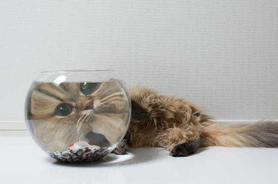 » Wallpaper Fluffy cat and a fish, acquaintance