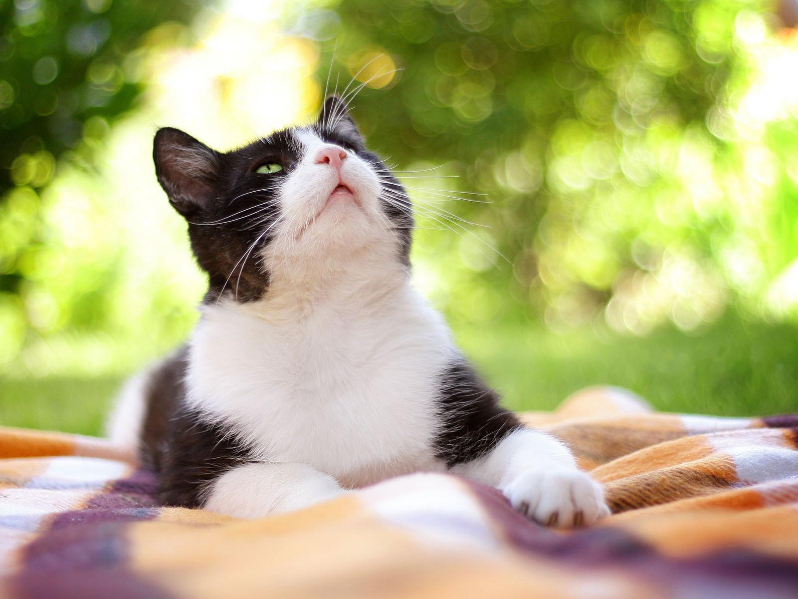 Wallpaper Black and white cat in nature