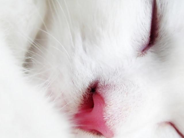 Wallpaper Sleeping white cat close up