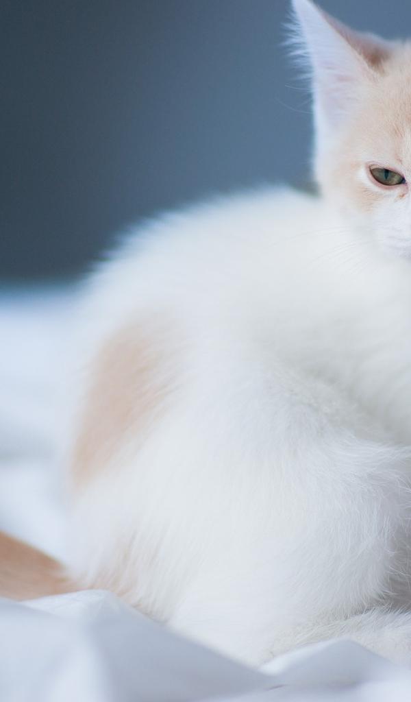 Wallpaper Small beautiful white cat hiding