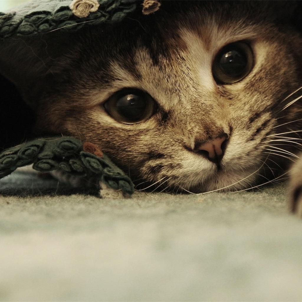 Wallpaper Funny beautiful cat under the rug