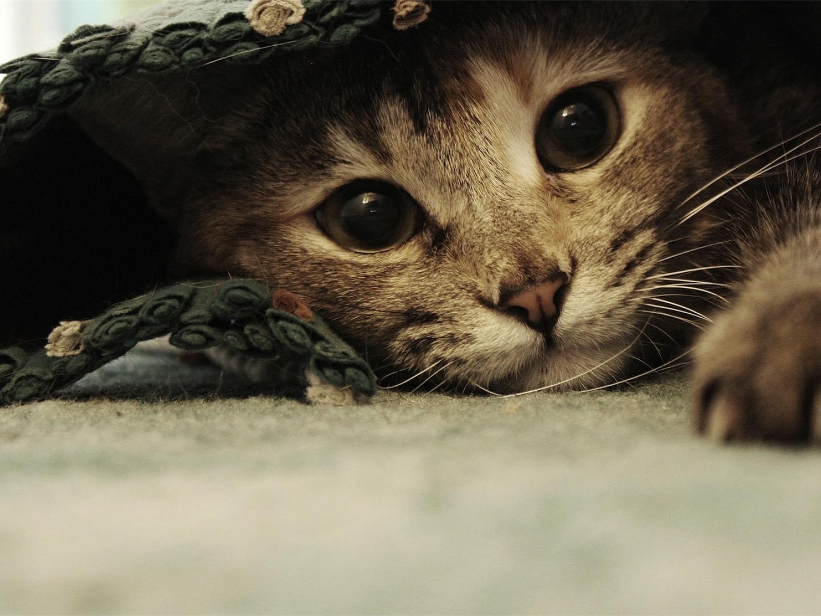 Wallpaper Funny beautiful cat under the rug