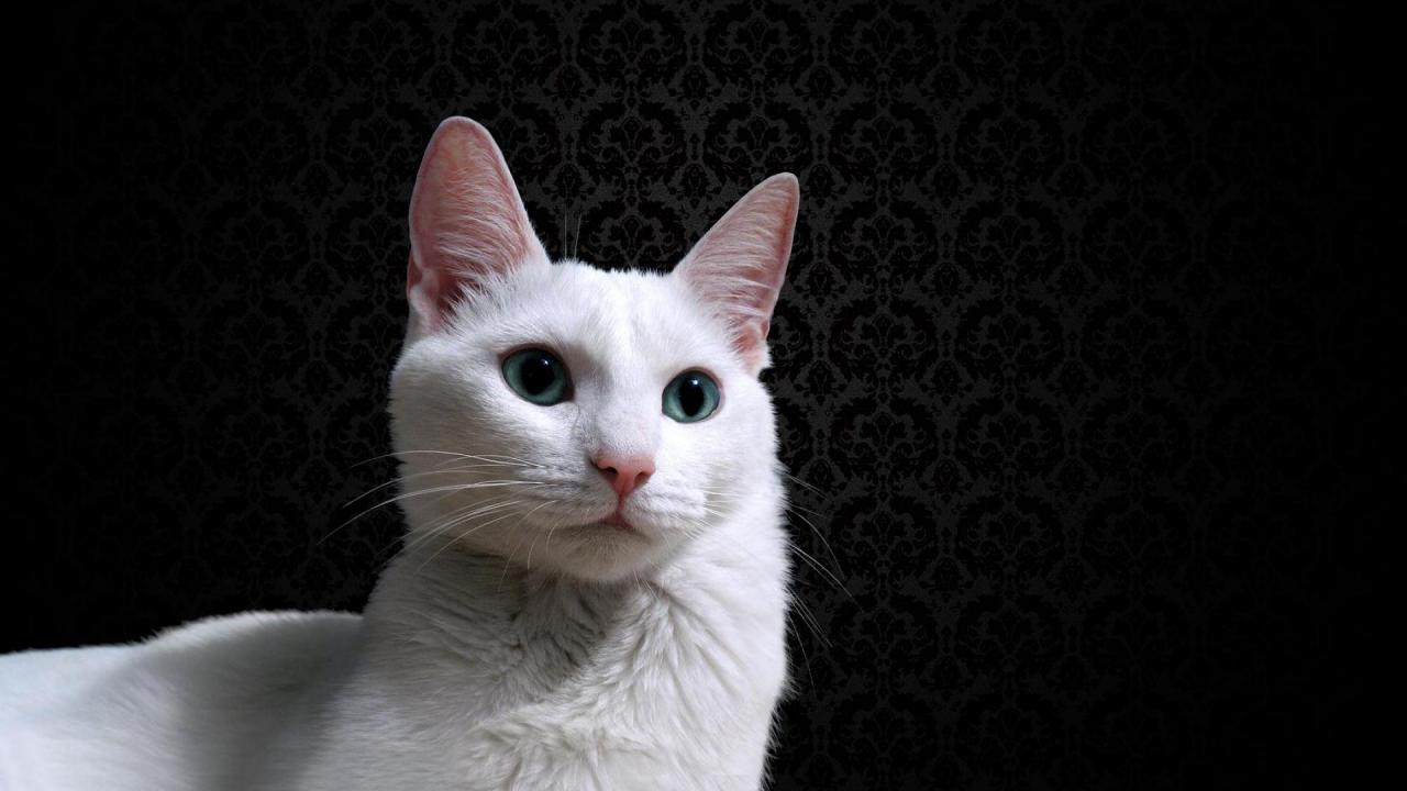 Wallpaper A beautiful white cat on a black background wallpaper