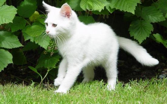 Wallpaper White young cat in the bushes