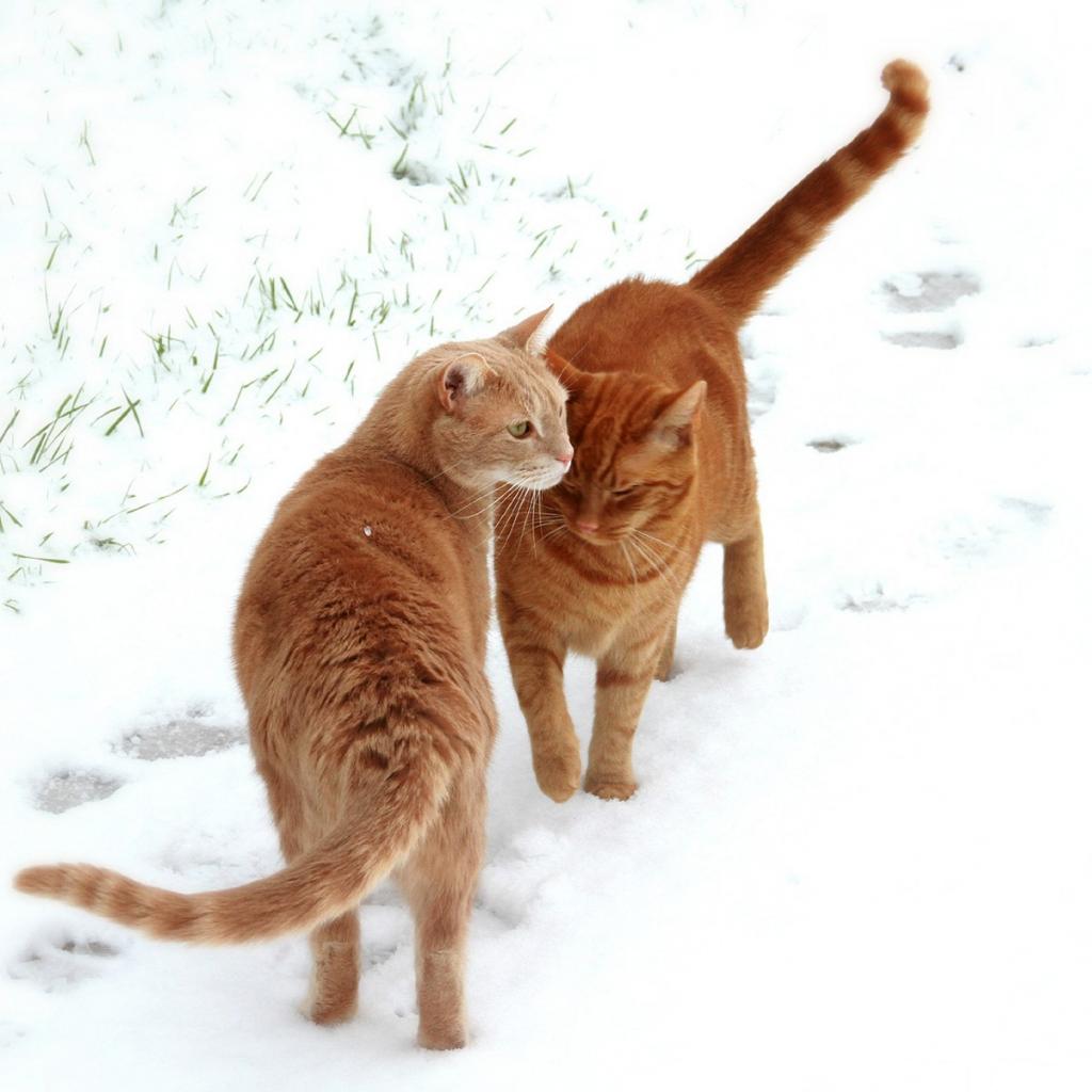 Wallpaper Red cats walking on snow