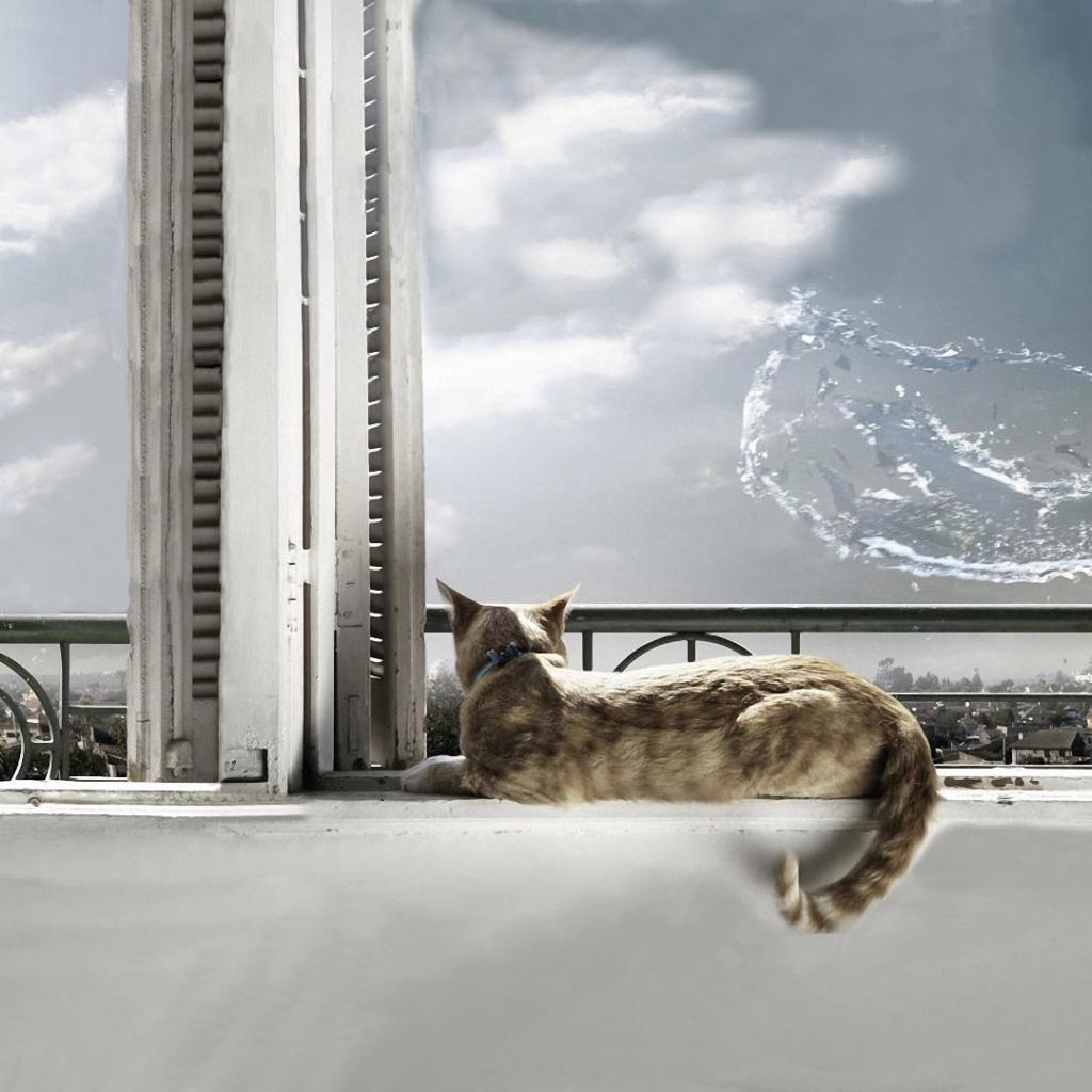 Wallpaper The cat splashed water